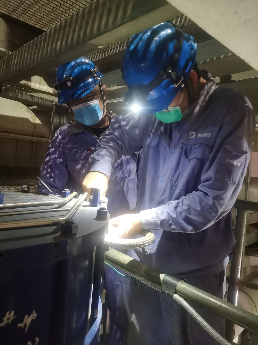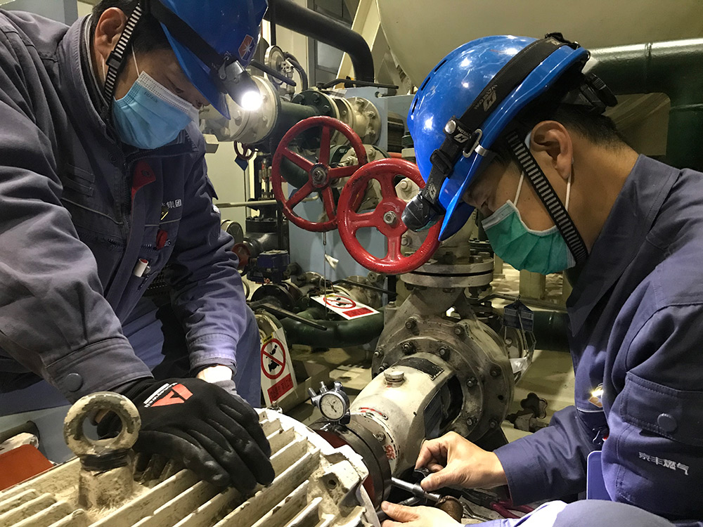 “疫”战之下,很多工作按下暂停键。而京丰的工作却刻不容缓。生产现场各种管道“丛林”、大大小小的设备中,忙碌的身影随处可见。一边是烤把加热的呼呼声,一边是拧紧螺母的叮咚声,口罩遮住了他们的面孔,心无旁骛的眼神注视向前,背上有汗,脸上有痕。热火朝天的检修工作在严格落实疫情防控措施的同时,安全有序地进行着。