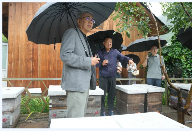 陈大宇一行在风雨中现场察看村容村貌,详细询问灾后重建情况,当了解到受损房屋道路道路已修整翻新、村民生产生活安然有序时,大家悬着的心才终于落了地。在蜂蜜养殖场等地,深入调研产业帮扶情况,对村集体经济发展现状有了直观了解。