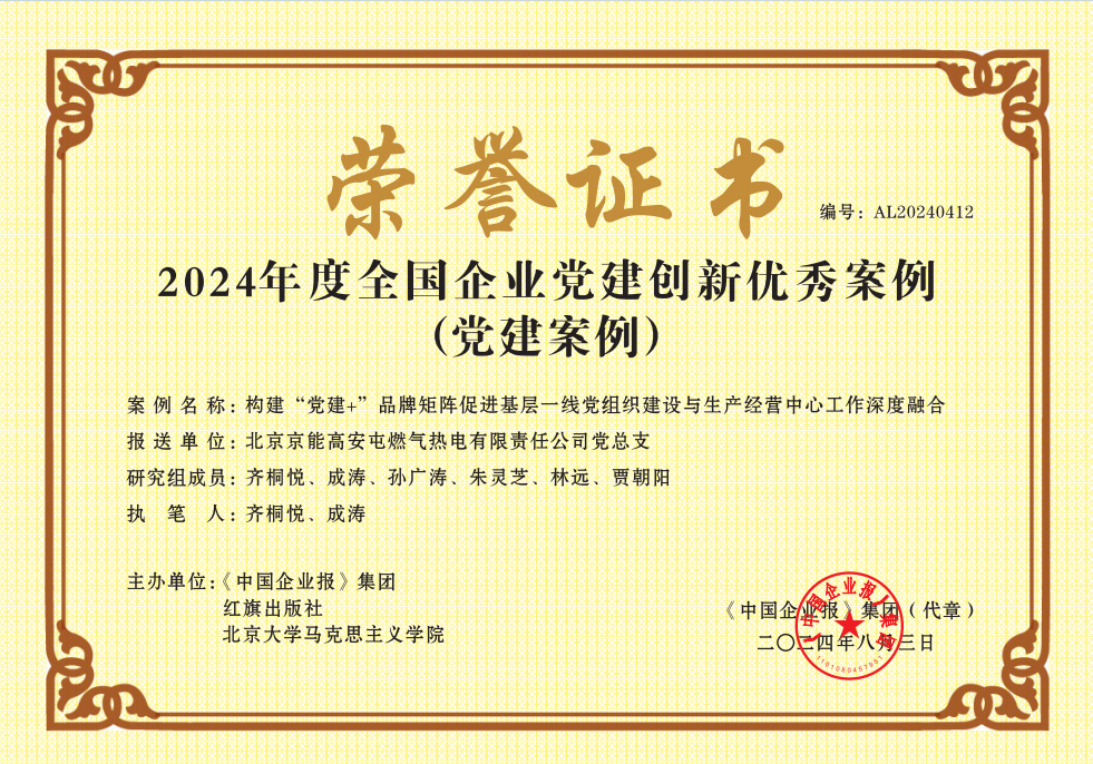 日前,高安屯热电以发电党支部为试点的党建案例《构建“党建+”品牌矩阵促进基层一线党组织建设与生产经营中心工作深度融合》获评2024年度全国企业党建创新优秀案例,这一荣誉是对高安屯热电在党建领域做出努力的高度肯定,更为高安屯热电未来持续深化党建创新、推动企业高质量发展注入了强大动力。