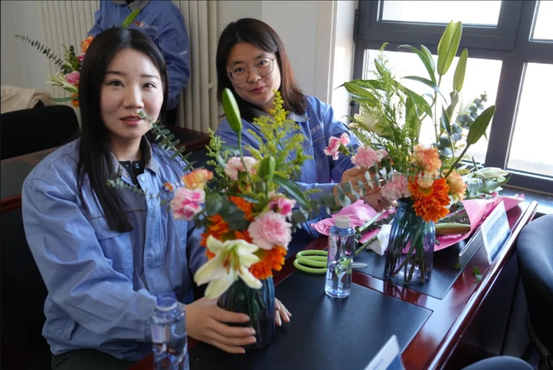 未来热电开展“春光有序·绽放芳华”主题系列活动,丰富女工精神文化生活,营造健康和谐、温馨欢乐的节日氛围。在插花老师的引领下,现场女工兴致盎然,真切感受插花艺术的魅力,在花香四溢和轻松愉悦的氛围中,完成了一件件错落有致的插花作品。